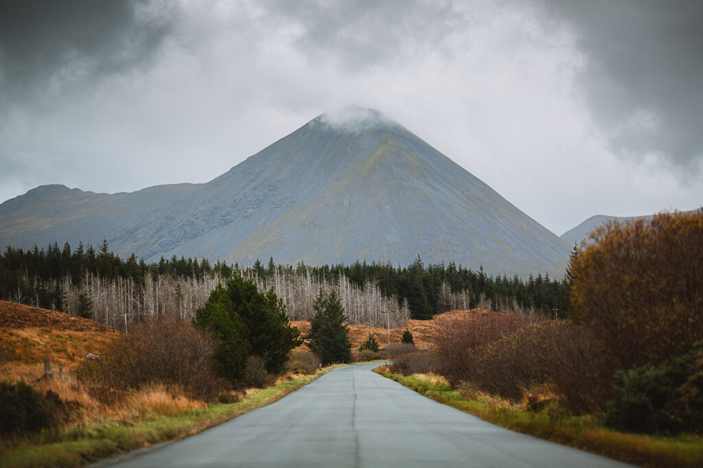 While heading south, I made one last creative stop: Loch Fada. It’s one of the classic vantage points for the Old Man of Storr, and even with the moody weather I couldn’t resist. I pulled over, grabbed the camera, and took a shot of the Storr rising through the gloom. A quick moment, but absolutely worth the detour.