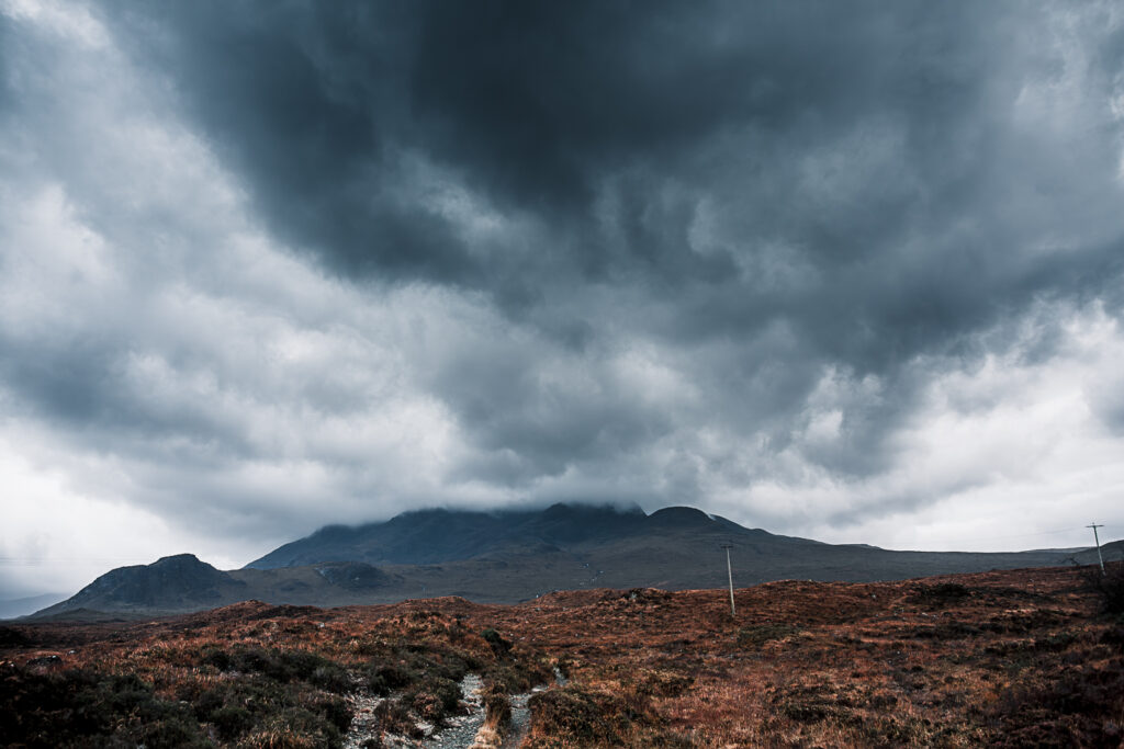 Even though the weather still wasn’t giving me its best behaviour, the atmosphere around Sligachan was pure magic. Moody clouds clung to the tops of the peaks, the wind howled across the open landscape, and everything felt raw and ancient. Exactly the kind of scene that makes you stop, breathe, and just take it in.