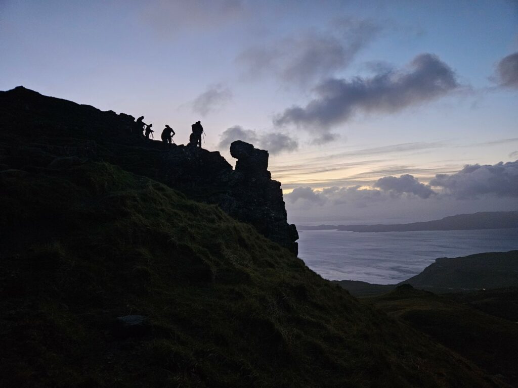 When I finally reached the viewpoint where other photographers were already waiting, I turned back toward the path I had just climbed—and there it was. The Old Man of Storr, standing proudly against the cloudy horizon. A view I’ll never forget.