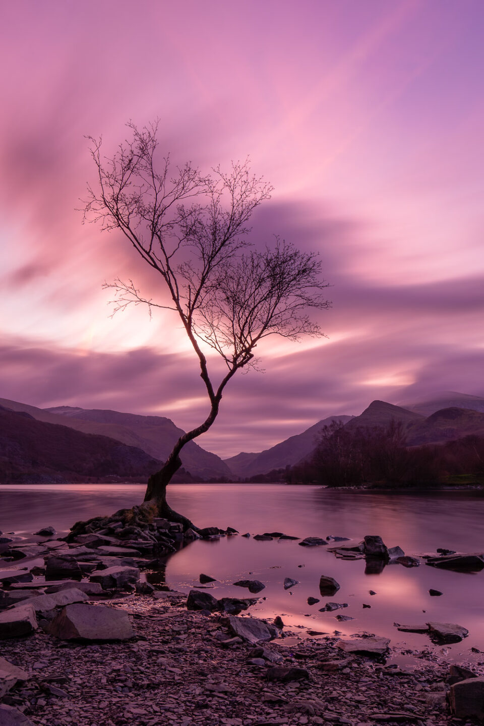 Experience the surreal tranquility of Llyn Padarn with this long-exposure variation. By leaving the shutter open, this image captures the passage of time—turning the restless clouds into soft brushstrokes and smoothing the lake into a mirror of liquid silk. The violet and lilac tones merge seamlessly, creating a painterly, dreamlike atmosphere that brings a deep sense of calm to any room.